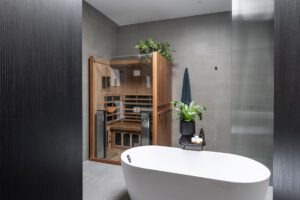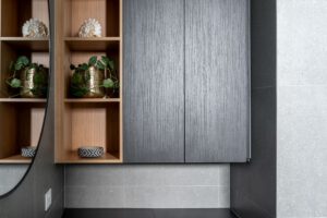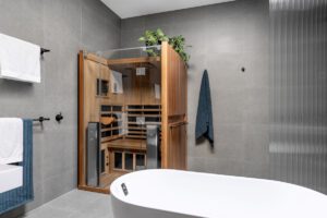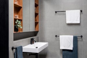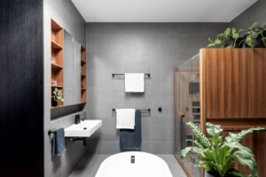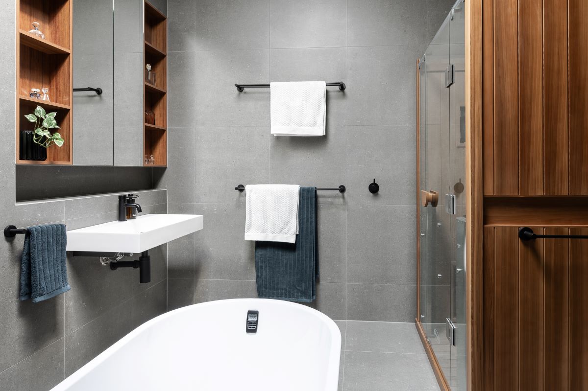 Collaboration with the homeowners, who are the owners of Seima, brought a uniquely Australian-inspired touch to the design. Many bespoke Seima products are showcased, including the freestanding Arko bath in the master ensuite, lit by a skylight, and the Attica pedestal basin in the powder room. This project exemplifies how creativity, collaboration, and innovative problem-solving can transform a challenging site into a home that celebrates nature, design, and Australian lifestyle.