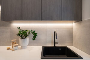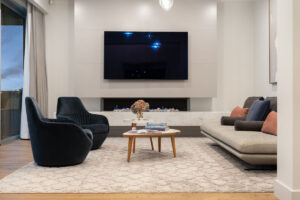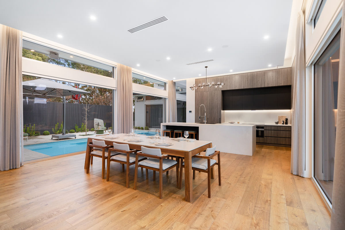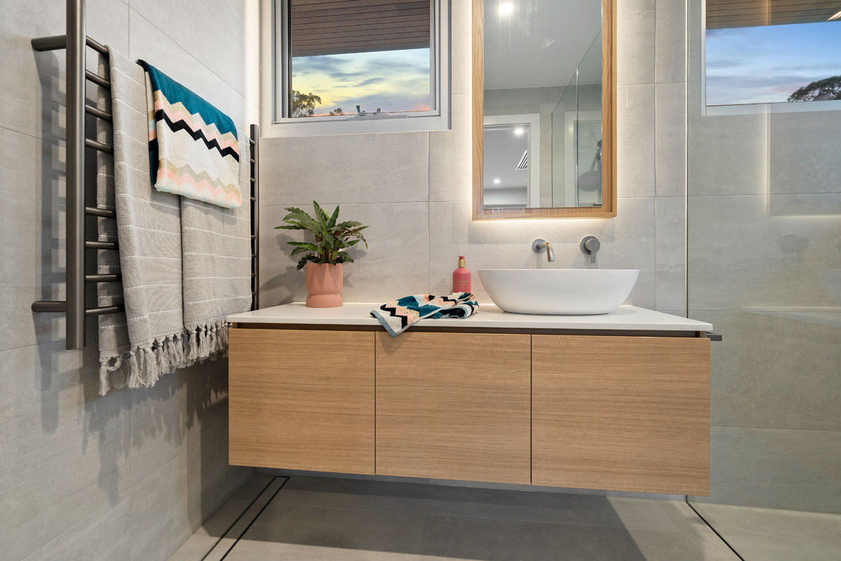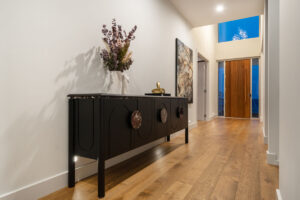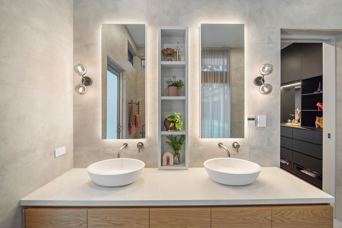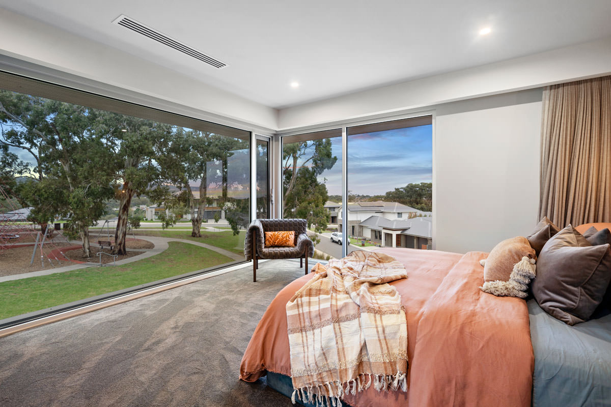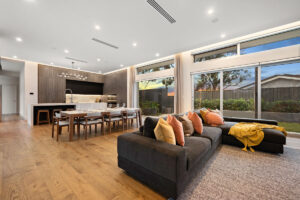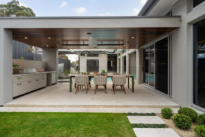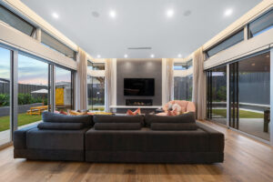 Inspired by Precision Homes’ display home, The One, the homeowners sought to capture its single-level layout, aesthetic, and connection to nature while working with a significantly sloped site. Precision Homes developed an innovative design that retained the single-level living zones while maximising views over the hills and surrounding mature gum trees. From the moment you enter, the home impresses with its grand proportions and thoughtful orientation, creating a tranquil hub in the formal lounge and master suite, away from the busy family zones.