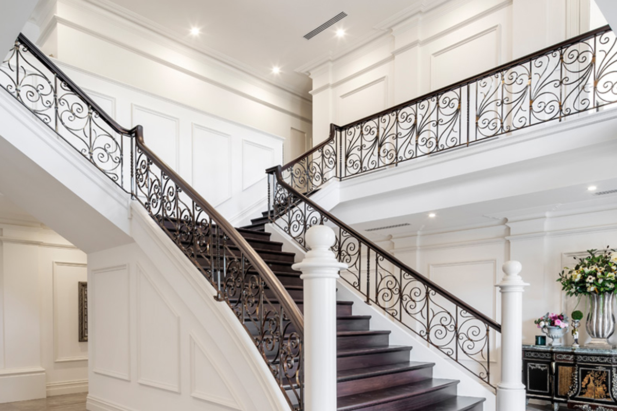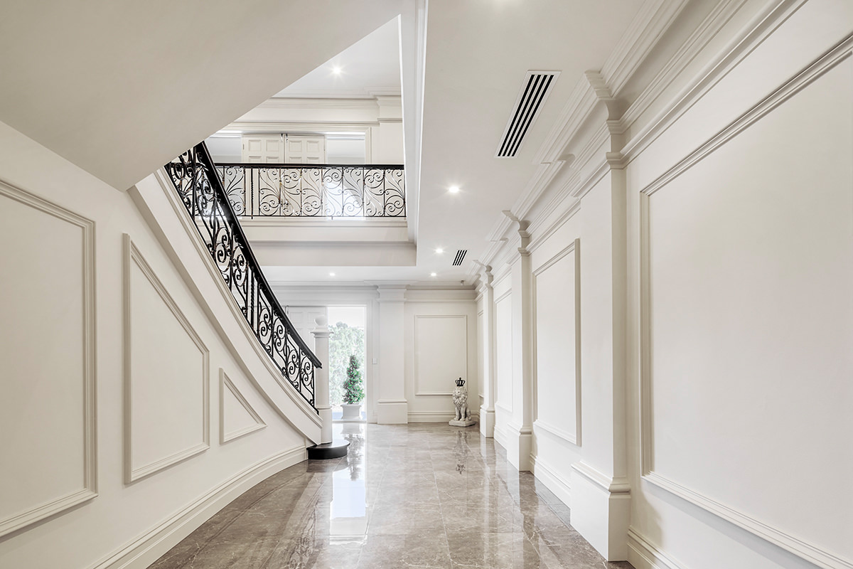 Set against the picturesque Adelaide Foothills, this multi-storey home exudes grandeur from the moment you arrive. The dramatic double-height entrance welcomes guests, while a massive sweeping staircase, adorned with a statement chandelier, serves as the architectural centrepiece, creating a striking first impression.